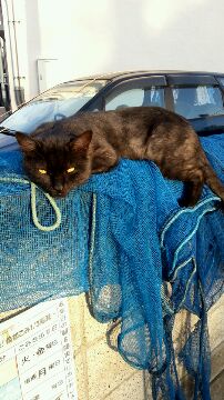 昼間、ゴミネットの上で
